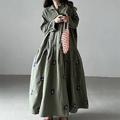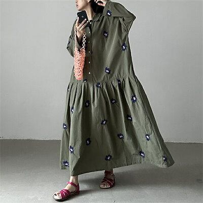ベストセラーシャツワンピース 秋冬 長袖 秋 レディース きれいめ 長袖 大きいサイズ ティアードワンピース ロング 緑 ティアード 春秋 マキシ丈 花柄 総柄 ロングワンピース ビッグシルエット ゆ