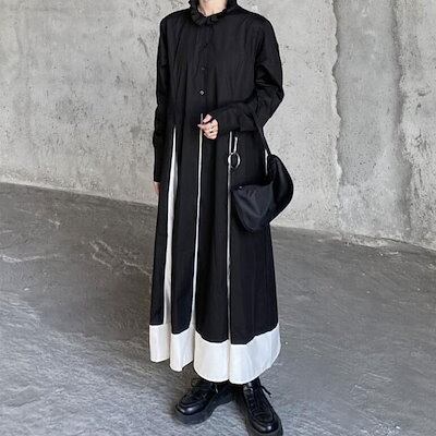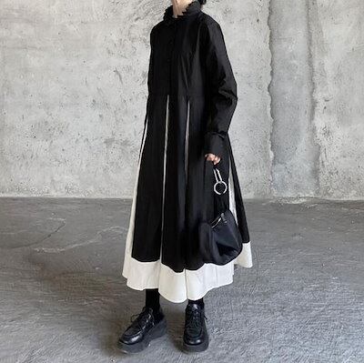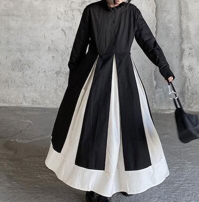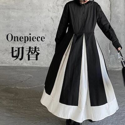 早割価格ロングワンピース 長袖 秋冬 レディース シャツワンピース 切替 きれいめ マキシワンピース 長袖ワンピース Aライン 春秋 フレア ビッグシルエット ゆるっと カジュアル ゆったり 大人可愛