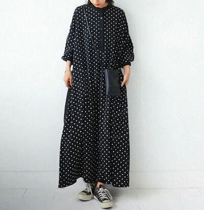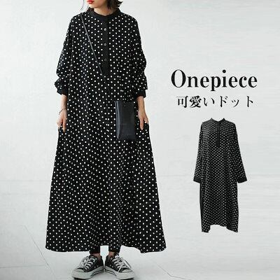 お見逃しなくロングワンピース 長袖 秋冬 レディース シャツワンピース きれいめ ドット マキシワンピース 長袖ワンピース 水玉 Aライン 春秋 フレア ビッグシルエット ゆるっと カジュアル ゆった