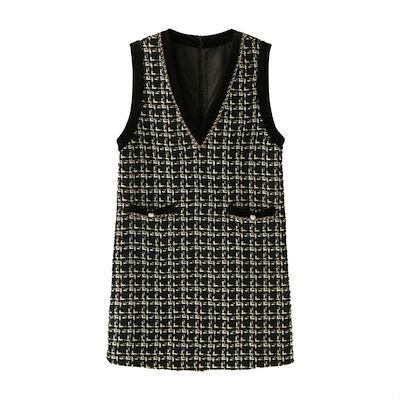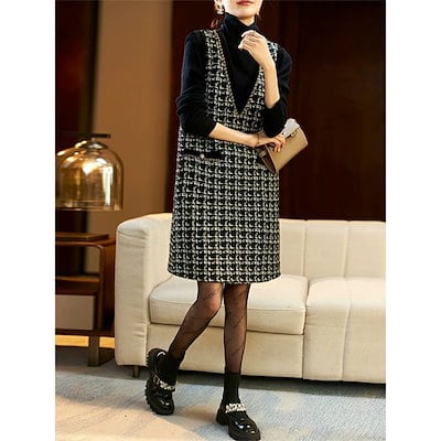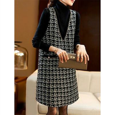 新品更新 ワンピース 春秋 レディース ジャンパースカート Vネック ジャンスカ サロペットスカート オールインワン ワンピ ノースリーブ タンクワンピース 重ね着 大人 かわいい きれいめ チェック