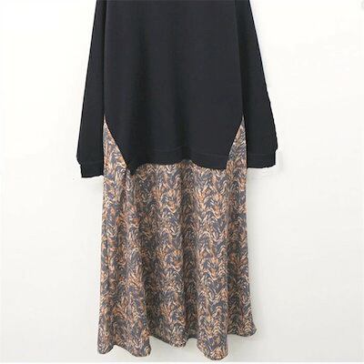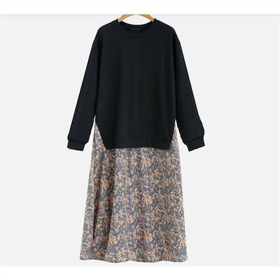 【目玉商品〜超人気】ロングワンピース 秋冬 きれいめ フォーマル 大きいサイズ ニット ロング丈 ワンピース レディース 長袖 黒 花柄 総柄 異素材 切替え 着?せ 通勤 レイヤード風 おしゃれ ゆ