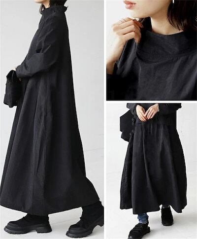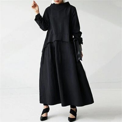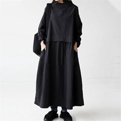 【新品追加】ロングワンピース レディース きれいめ カジュアル ワンピース 長袖 ハイネック 小顔 綿混 春 ロング丈 マキシ丈 マキシワンピース 伸縮性 柔らかい 無地 通勤 通学 体型カバー 大き