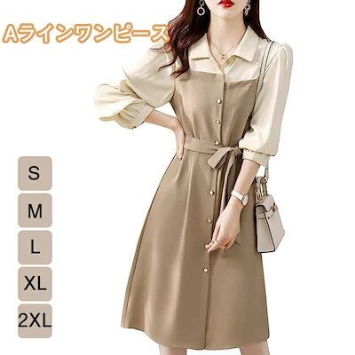 爆裂超特価 ワンピース レディース 上品 Aライン アシンメトリー デザイン ウエストリボン 前開き 膝丈 春 夏 秋ロング丈 着痩せ 体型カバー 春 夏 秋 大きサイズ S-2XL