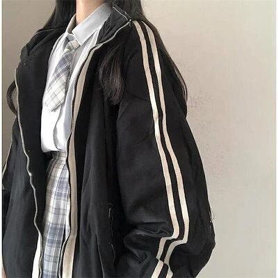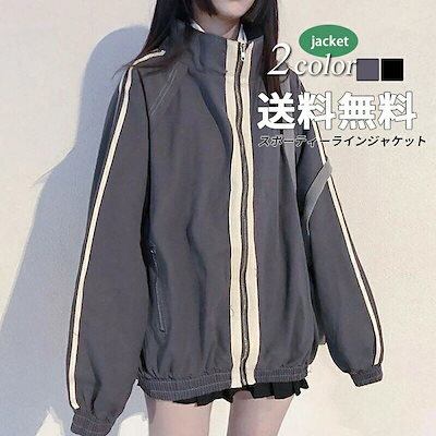 早いもの?ち アウター ジャンパー レディース 2色 ブルゾン ジャケット 長袖 スポーティ ライン ラグランスリーブ ハイネック おしゃれ オーバーサイズ ゆったり ビッグシルエット メンズライク