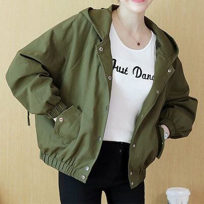 大人気 アウター レディース ブルゾン ジャケット ジャンパー 長袖 ラグランスリーブ ドロスト フード付き カジュアル おしゃれ かわいい メンズライク ラフ こなれ感 無地 普段使い ロングシーズ