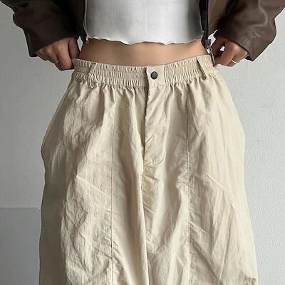 【急速出荷!】25 ウエストゴム ハイウエストカーゴパンツ ボトムスワイドパンツベイカーパンツストレートゆったりルーズ 韓国カジュアルスポーティーメンズライクレディースファッショントラック
