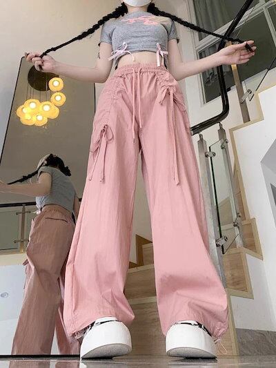 【急速出荷!】25パンツ ロング丈 カーゴパンツ ワイド ストレート ハイウエスト 美脚効果 脚長効果 細見え 白 黒 青 韓国ファッション レディース かわいい おしゃれ カジュアル お出かけ