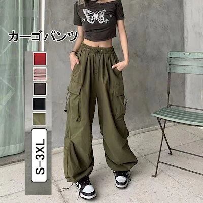 ワイドパンツデニムボトムスoo10 ワイドパンツ カーゴパンツ レディース ミリタリーパンツ カーゴ レディースパンツ レディース テーパードパンツ ダンス衣装 ウエストゴム 美シルエット