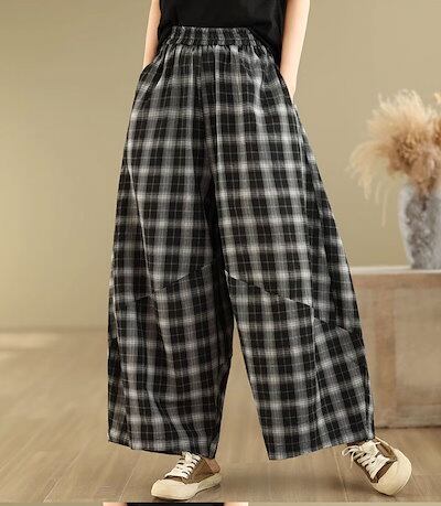 ハーレムパンツ ロングパンツ レディース チェック柄 通気性 綿パンツ バルーンパンツ カーゴパンツ サルエルパンツ コットン イージーパンツ ワイドパンツ 体型カバー ズボン ゆったり リラックス