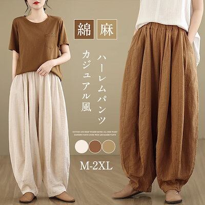 リネン パンツ レディース ハーレムパンツ 涼しい 綿麻パンツ バルーンパンツ カーゴパンツ サルエルパンツ 綿麻 イージーパンツ リネン コットン ワイドパンツ 体型カバー ズボン ゆったり リラッ