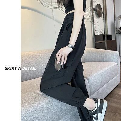 アイスシルク 速乾 カーゴパンツ レディース 薄い ハイウェスト ゆったり スウェットパンツ