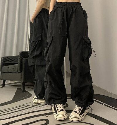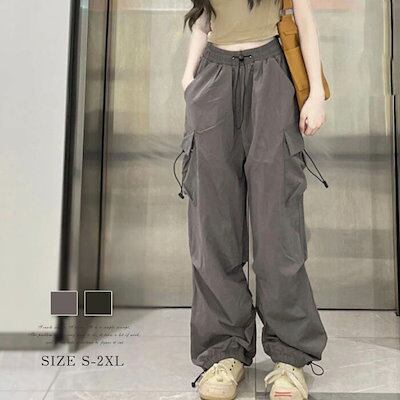 UESカーゴパンツ レディース ワイドパンツ ミリタリーパンツ カーゴ 春 夏 秋 冬 ジョガーパンツ ロング丈 ロングパンツ ボトムス ワイド レディース 無地 大人 かっこいい カジュアル 通勤 ウエス