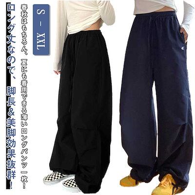 カーゴパンツ レディース 夏 ロングパンツ ワイドカーゴパンツ ストレート ネイビー ブラック ゆったり ポケット付き シンプル カジュアル 低身長 普通丈 高身長 パンツ 速乾 ヒップホップ ダンス