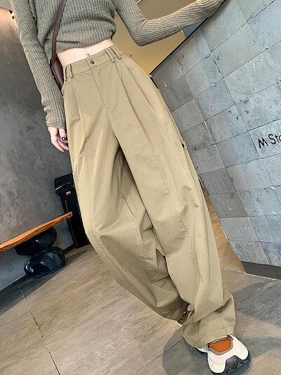 チノパンツ ワイドパンツ カーゴパンツ ベイカー パンツ ロングパンツ カーゴパンツ レディース ストレート ズボン ボトムス 体型カバー ロング 着痩せ 楽ちん ゆったり
