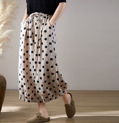 カーゴパンツ レディース ドット柄 水玉 ワイドパンツ ロング 麻 リネン 大きいサイズ ワイド バルーンパンツ 春 春夏 涼しげ シンプル きれいめ ナチュラル カジュアル 肌触りよい ロングパンツ