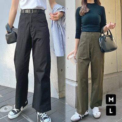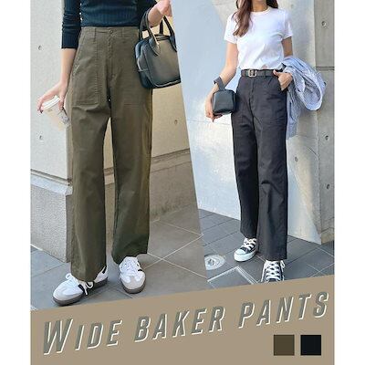 値下げ済み 3日以内に出荷 パンツ ワイドパンツ ブラック カーキ ベイカーパンツカーゴパンツ 夏 秋 レディースメンズライク カジュアル韓国 / ワイドベイカーパンツ 2枚購入で150円OFF