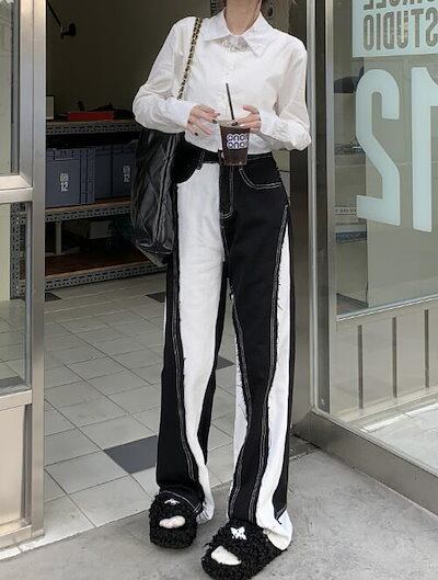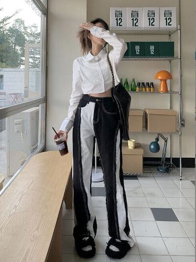 カーゴパンツ 黒と白 系 レディース 韓国ファッション ヒップホップ ダンス衣装 BF風 ハイウ