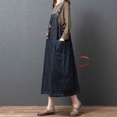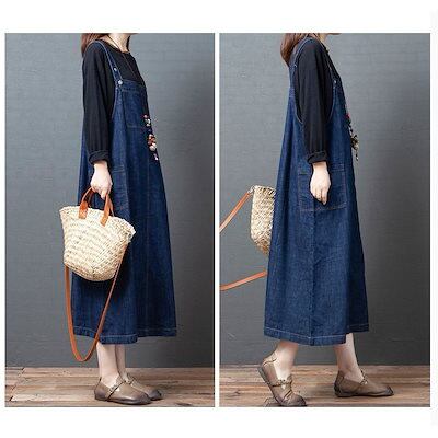 サロペットスカート ロング レディース ゆる ノースリーブ デニム 着回し 体型カバー カジュアル デーリー お出かけ 大きいサイズ 代30代