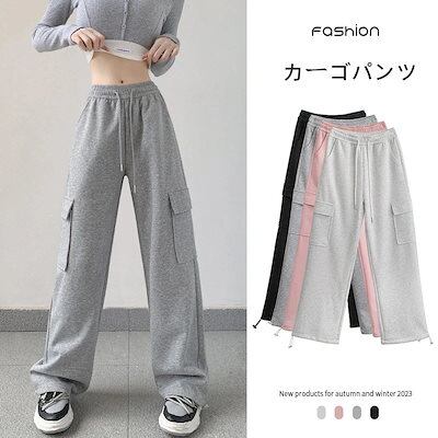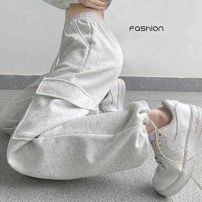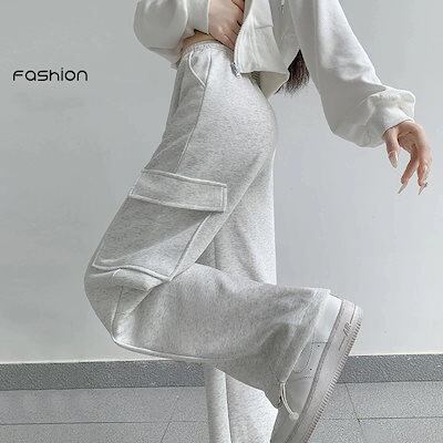 【急速出荷!】グレー カーゴパンツ レディース 薄い ワイドパンツ ハイウェスト カジュアル スウェットパンツ