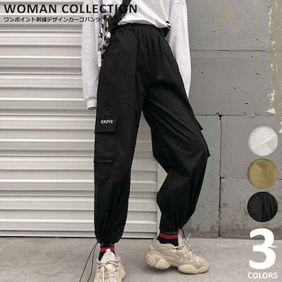 2点購入で200円割引プロモーション最終日 お一人様1点カーゴパンツ レディース 秋 韓国ファッション ゆったり 【メール便】 カジュアル ダンス ホワイト ベージュ ブラック 白 黒 Sサイズ Mサ