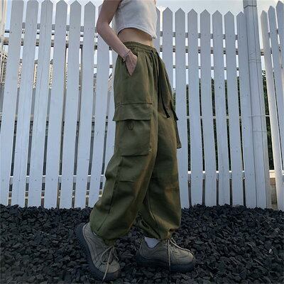 パンツ レディース カーゴパンツ ベイカーパンツ ロング ミリタリーパンツ 春 夏 秋 冬 オールシーズン ボトムス ポケット ウエストゴム 通勤 通学 ストリート シンプル 楽ちん 体型カバー スト