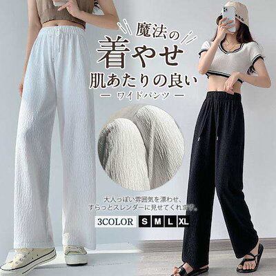 ワイドパンツ レディース ガウチョパンツ ボトムス フェミニン ゆったり 楽ちん ストレート リラックス ズボン 接触冷感 美ライン 着痩せ 送料無料