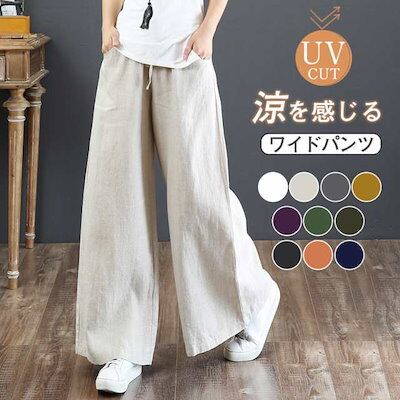 ワイドパンツ レディース 冷感 ボトムス シフォン 九分丈 ガウチョパンツスカート パンツ ゆったり ハイウエスト スウェット 薄