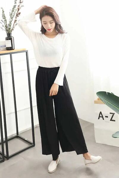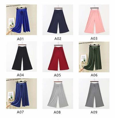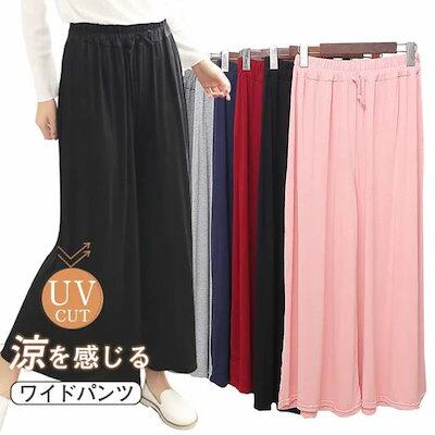 ワイドパンツ レディース 冷感 ボトムス ロングパンツ ガウチョパンツ 紐付け マキシ 七分丈 九分丈 ゆったり シンプル スカー