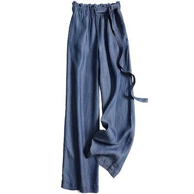 ワイドパンツ レディース ボトムス ガウチョパンツ フェミニン ゆったり ズボン 涼しい ストレート リラックス 柔らかい 接触冷感 デニム 送料無料