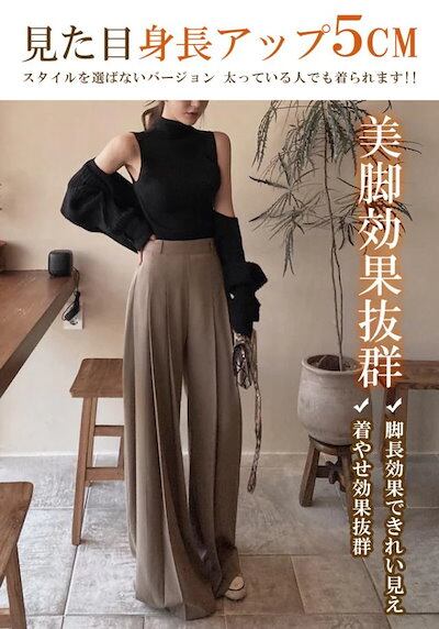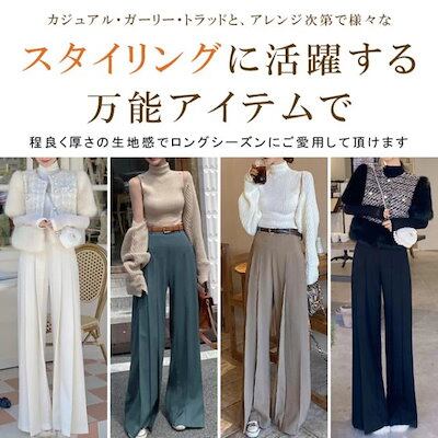 ワイドパンツ ボトムス ハイウエスト プリーツ 美脚 ガウチョパンツ ロング パンツ レディース ゆったり