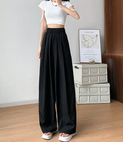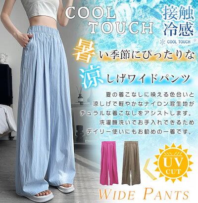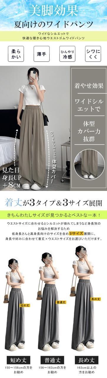 丈感選べる 「低身長高身長」 ワイドパンツ レディース 夏 涼しい 涼感 冷感 速乾 パンツ ボトムス ゆったり ガウチョパンツ タック入り タック ワイド 大きいサイズ ポケット付き