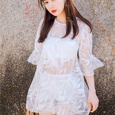 【3日以内出荷】水着 三点セット ワンピース レディース スプリット フラットアングル 薄手 スチューデント スパ スイミング レース 体型カバー 韓国