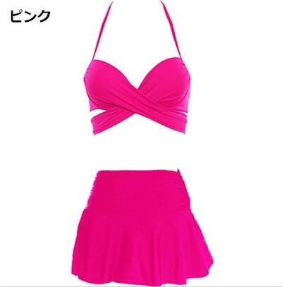 水着 3点セット スカート付き ホルターネック スイムウェア ビーチウェア クロスデザイン バックリボン カジュアル 激安水着