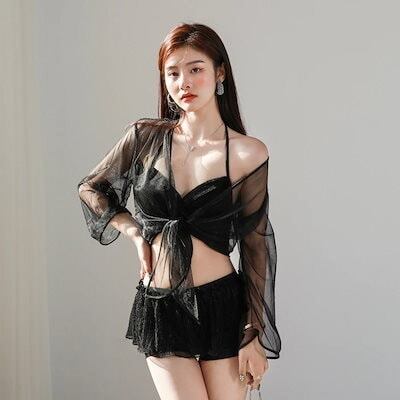 水着 激安水着 体型カバー 気沸騰水着 Swimwear レディースセクシービキニ3点セット長袖ブラウス日焼け止めスリム 韓国ファッション