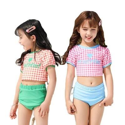 【3日以内出荷】2023年新型子供水着かわいい女の子チェック女の子スプリット水着赤ちゃん水着帽子3点セットキッズ 韓国ファッション