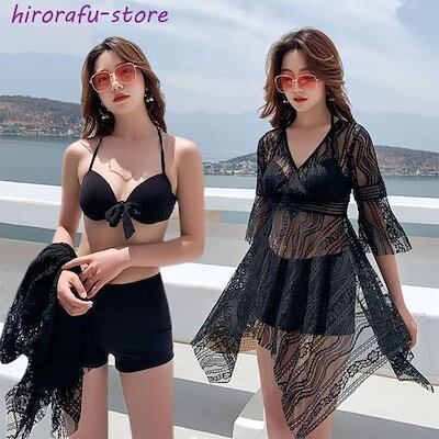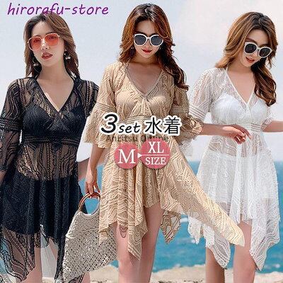 水着 レディース 体型カバー 韓国 中学生 高校生 大学生 露出控え 大きいサイズ かわいい 3点セット セットアップ カバーアップ ビキニ タンキニ おしゃれファシ