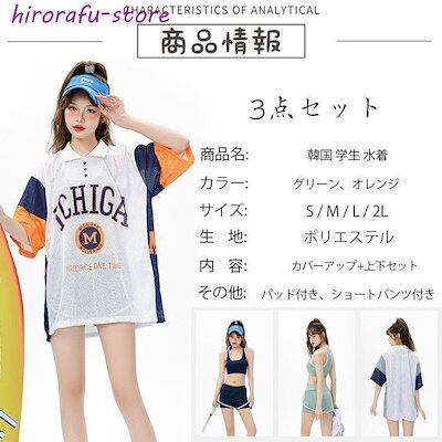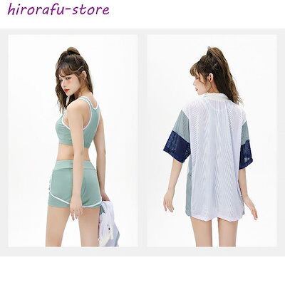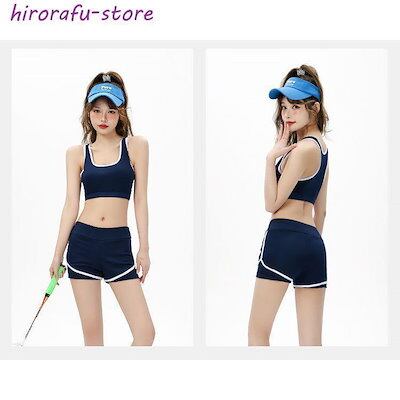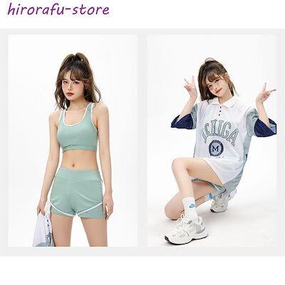 水着 レディース 体型カバー 韓国 中学生 高校生 大学生 水着セット 水着 スポーティー 3点セット セパレート タンキニ タンク ショートパンツ か
