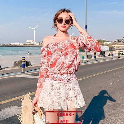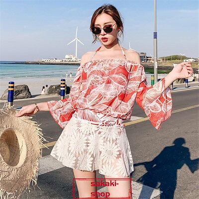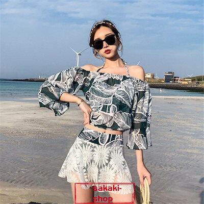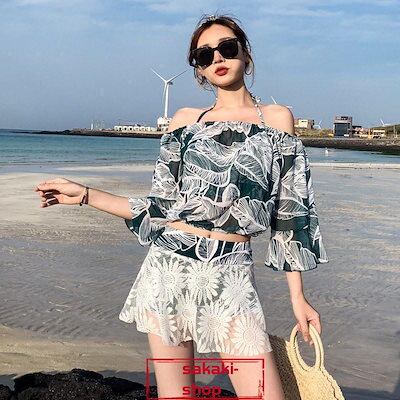 【新品】水着 レディース 体型カバー 3点セット ハイネック ビキニ花柄 パレオ スカート リゾート韓国 ファッション おしゃれ 着痩せ 海水浴