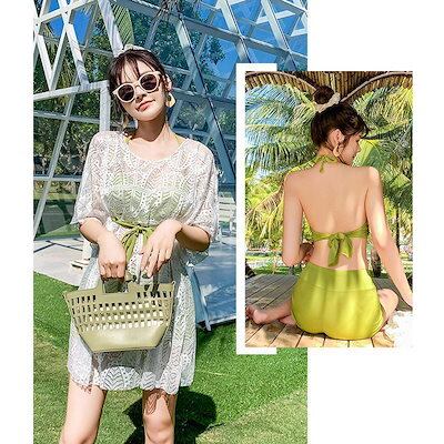 【Primepic】【急速出荷】水着レディース 体型カバー 3点セット 水着 胸パッド 付き 大きいサイズ 可愛いスイムウェア 温泉 肩出し ママ水着 海水浴 温泉 プール 旅行 ビーチウェア