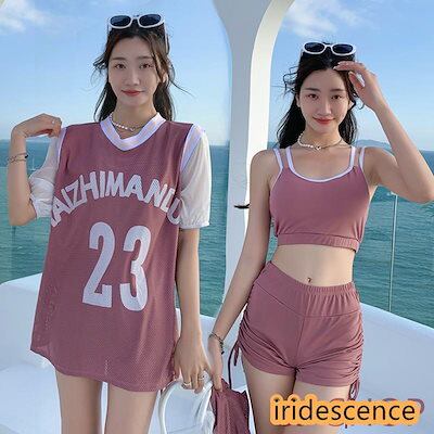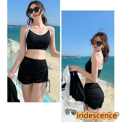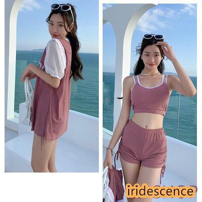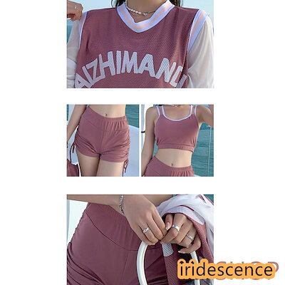 2つ目はサプライズ水着 レディース 体型カバー 中学生 高校生 3点セット スポーティー 学生 韓国 プール 海 可愛い おしゃれ 水着 ショートパンツ ラッシュガード スクール水着