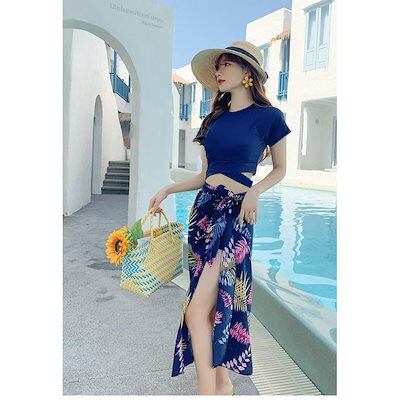人気沸騰 タンキニ レディース 水着 体型カバー 3点セット ビキニ パレオ 水泳服 スイムウェア リゾート ビーチウェア 胸パッド付き ワイヤー無し