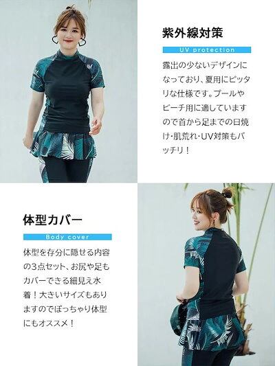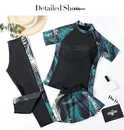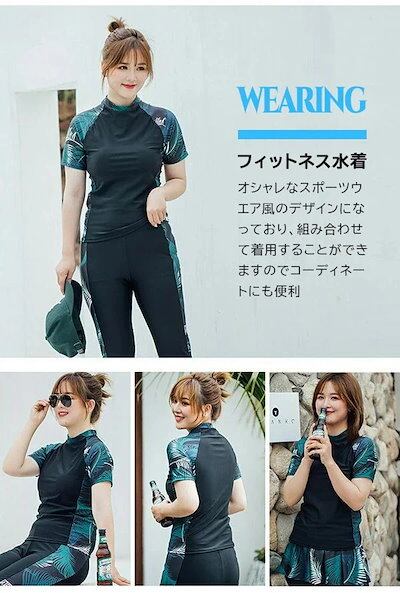 フィットネス水着 服みたいな 半袖 セパレート ラッシュガード レディース ぽっちゃり 水着 大きいサイズ 3点セット パンツ 競泳 体型カバー 韓国風 大人 上下セット 海水浴 海の日 プール 海