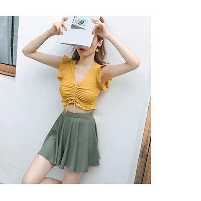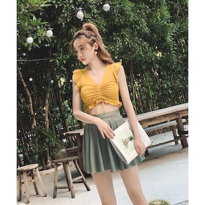 ビキニ水着レディース 夏 ビキニ2点セット水着 体型カバー 韓国風 リボン フレア ボリューム 小胸バンドゥビキニ 水着 セパレート 40代 可愛い スイムウェア