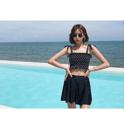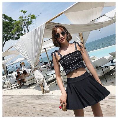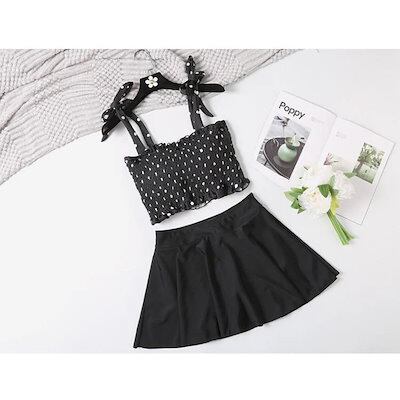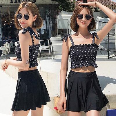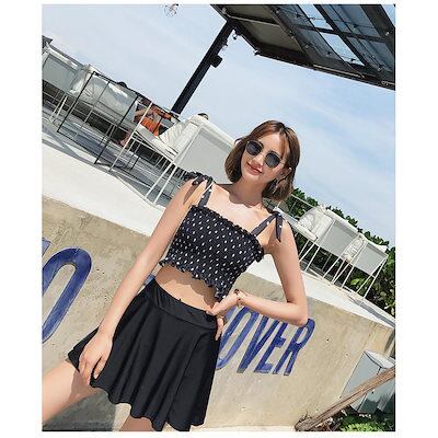 水着2点セット レディース 体型カバー水着 セパレート ドット柄 黒スカート ビキニ 小胸バンドゥ 40代 オシャレ韓国風 可愛いスポーツ スイムウェア ママ水着