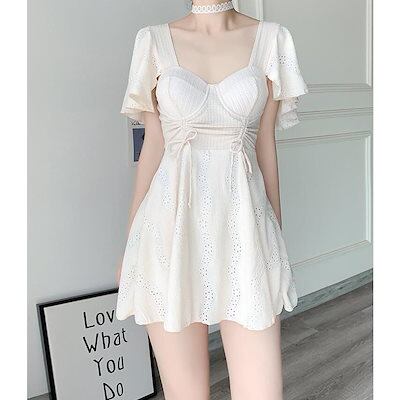 水着 レディース ワンピース 体型カバー 大きいサイズ かわいい おしゃれ 無地 黒 フリル 袖 ハイウエスト 露出控えめ カットアウト カッティング