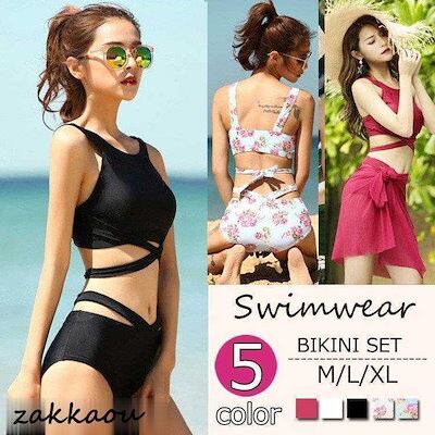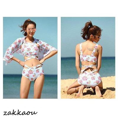 ビキニ水着レディース 夏 ビキニ3点セット 韓国風 花柄 三角ビキニ 水着 セパレート 40代 可愛い スイムウェア 温泉 ママ uvカット