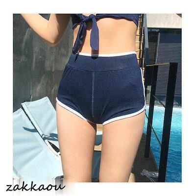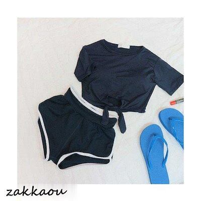 ビキニ水着レディース 夏 ビキニ2点セット水着 体型カバー 韓国風 ハイウエスト 半袖 配色水着 小胸バンドゥビキニ セパレート 可愛い スイムウェア ママ水着
