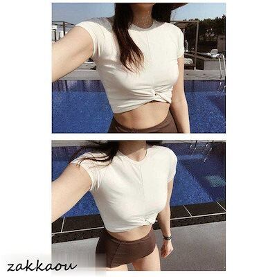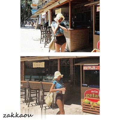 ビキニ水着レディース 夏 ビキニ2点セット水着 体型カバー 韓国風 ハイウエスト 半袖 配色水着 小胸バンドゥ セパレート 可愛い スイムウェア 温泉 ママ水着