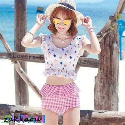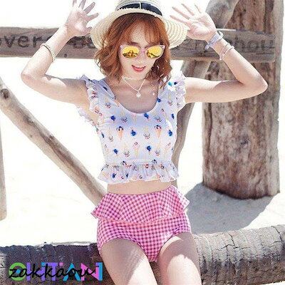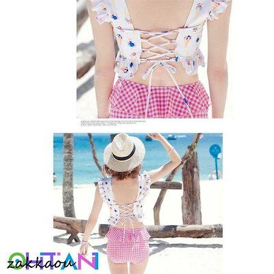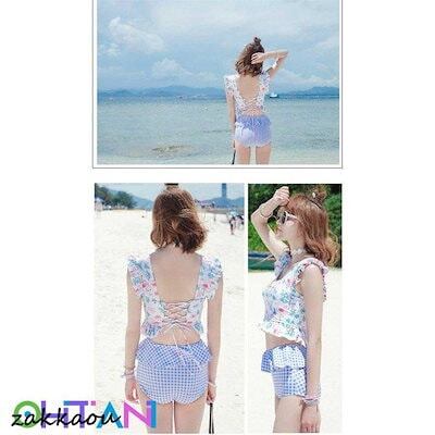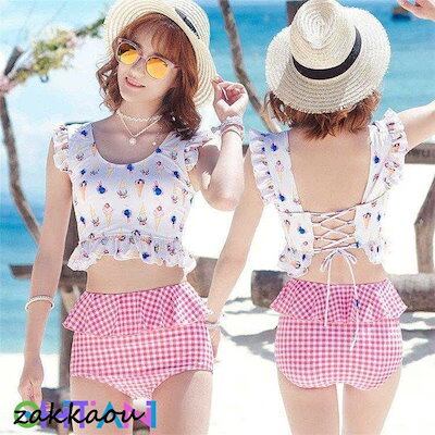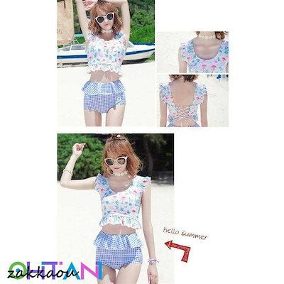 ビキニ水着レディース 夏 ビキニ2点セット水着 体型カバー 花柄韓国風 ハイウエスト フレア 小胸バンドゥビキニ セパレート 可愛い スイムウェア 温泉 ママ水着