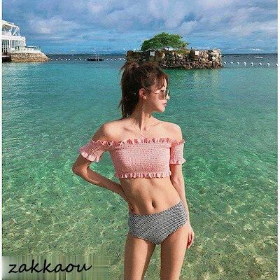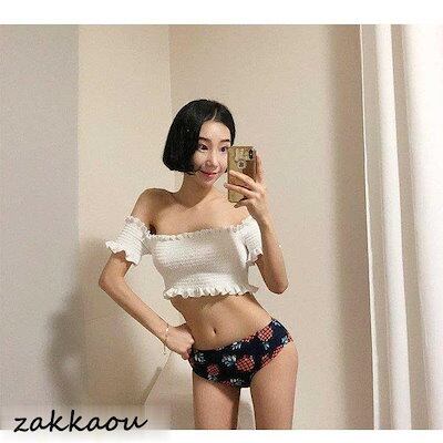 ビキニ水着レディース 体型カバー ビキニ2点セット 韓国風 ボールドネックビキニ 水着 セパレート 花柄 40代 可愛い スイムウェア 温泉 ママ